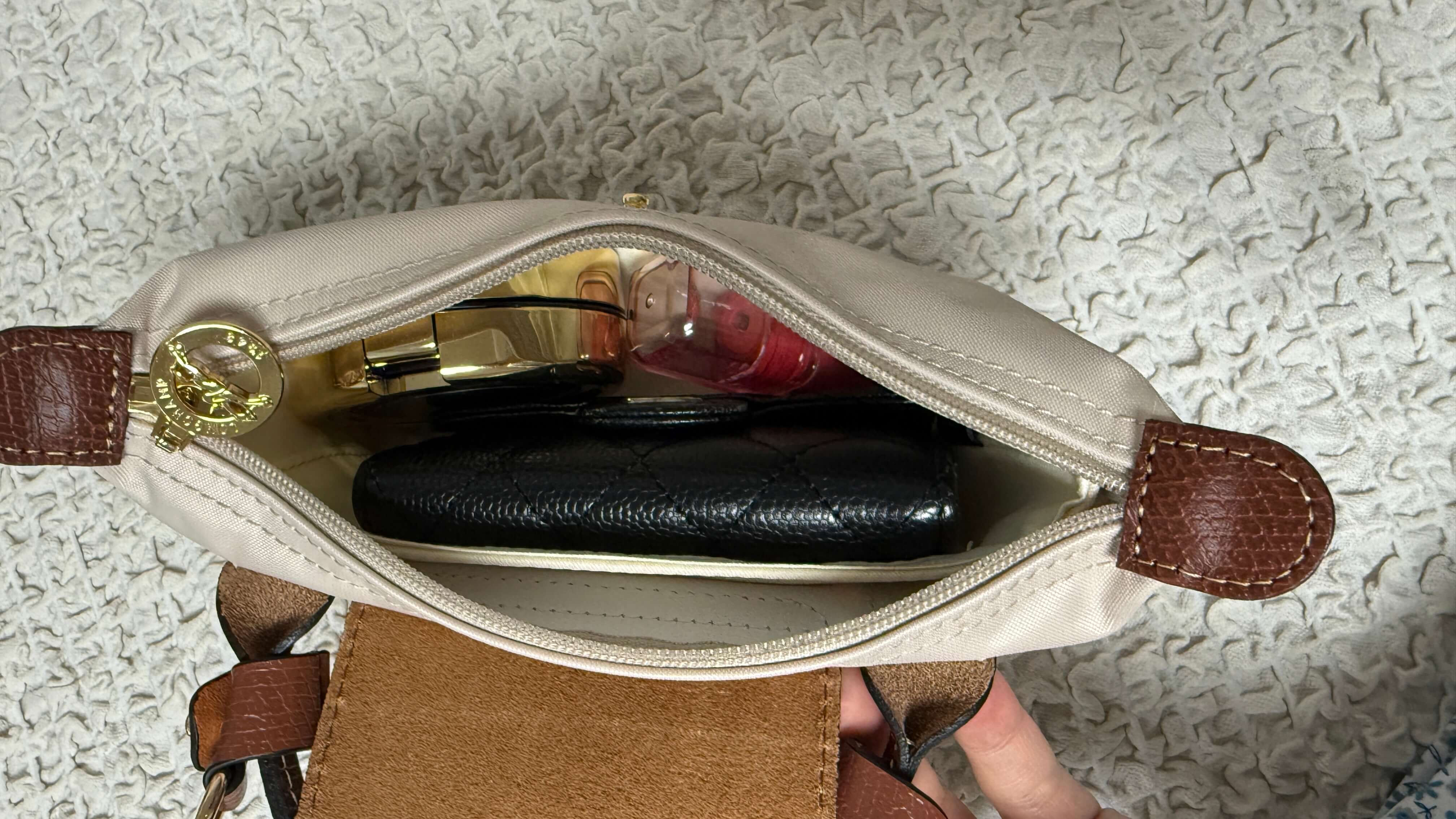 롱샴 로고 마크에 지퍼부분에는 롱샴 참도 달려있고 작은 사이즈인데도 고급스러움을 더해 디테일하게 있을건 다 있네요.