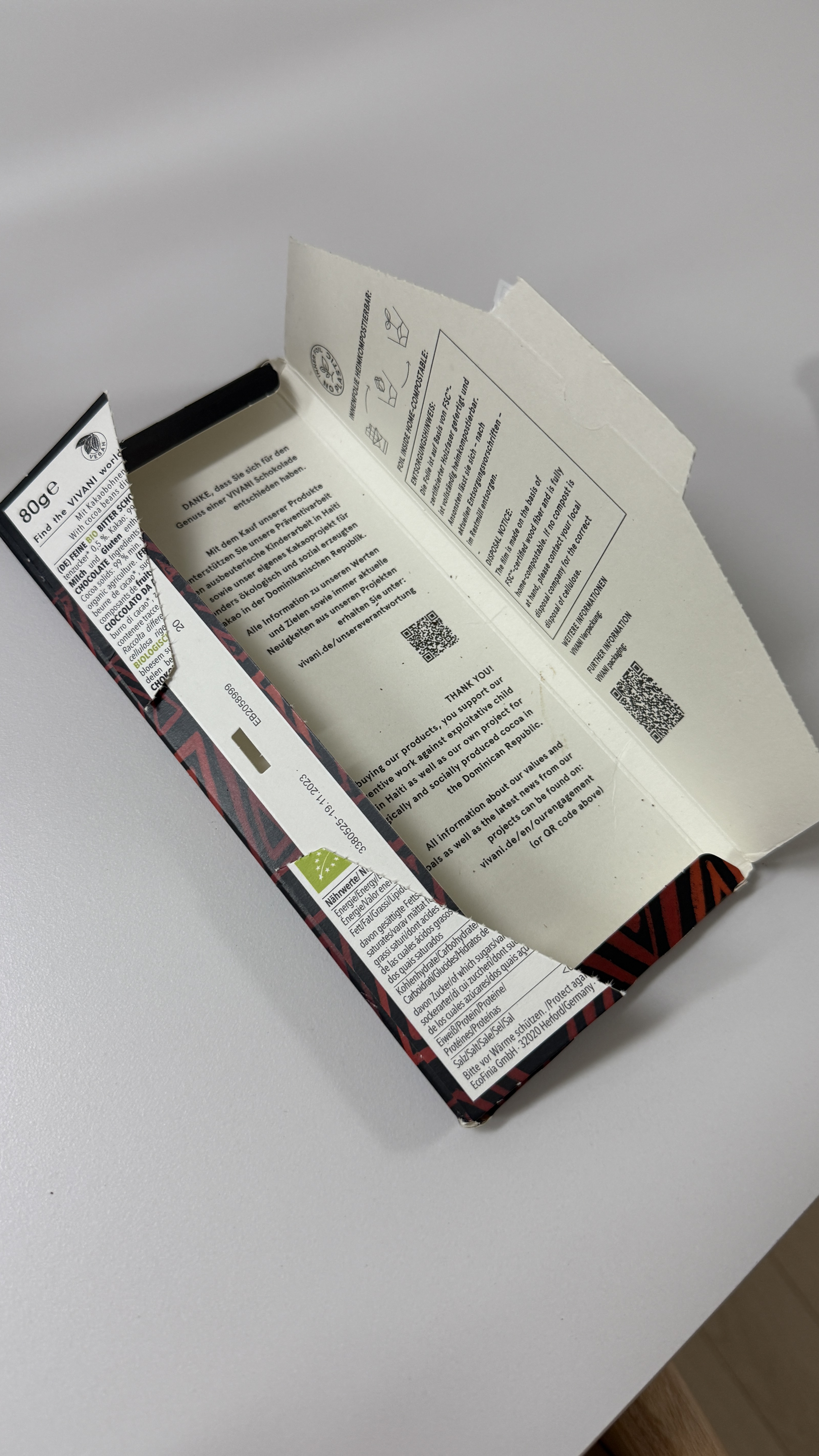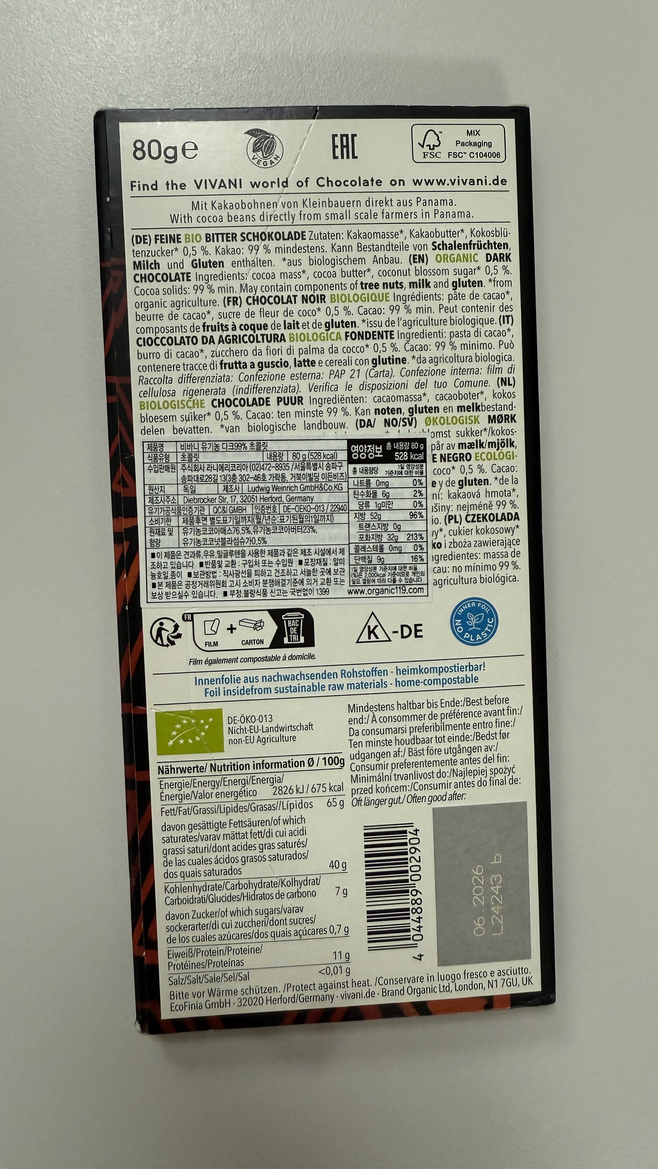 사실 포장지를 보고 왜 이렇게 부실하지 그랬는데, 요즘 이슈가 되고 있는 환경문제에 따라 비바니 초콜릿은 한발 앞서 나아가 초콜릿 패키지는 모두 리사이클링이 가능한 포장지로만 이루어져 있어요.