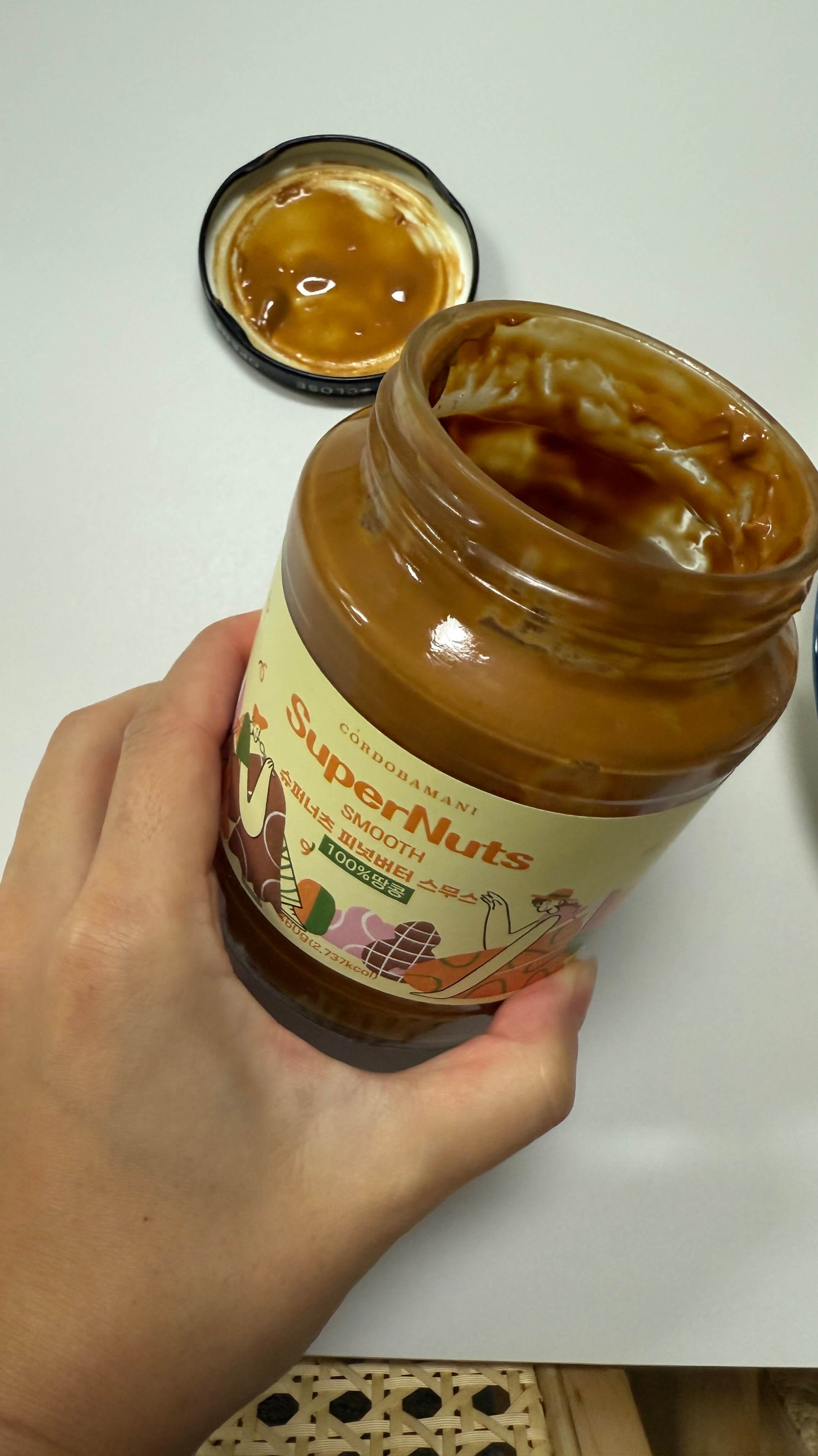 오넛티 제품도 원래 색이 살짝 더 진한 갈색이었는데, 땅콩 수입원이 바뀌면서 약간 밝은색으로 바뀐것 같아요. 그전에 먹던게 더 꼬수운 느낌도 들었어요. 한가인이 소개한 제품은 오넛티 땅콩버터이고, 100% 땅콩버터로 인기많은 제품 중, 슈퍼넛츠의 스무스 땅콩버터와 오넛티 땅콩버터가 있습니다. 조금 더 크리미 한 거보다 크런치한 게 좋으시면 크런치 종류로 드셔도 무관해요. 아이들도 아침에 사과에 땅콩버터 얹어 주면 너무 맛있게 잘 먹더라고요.