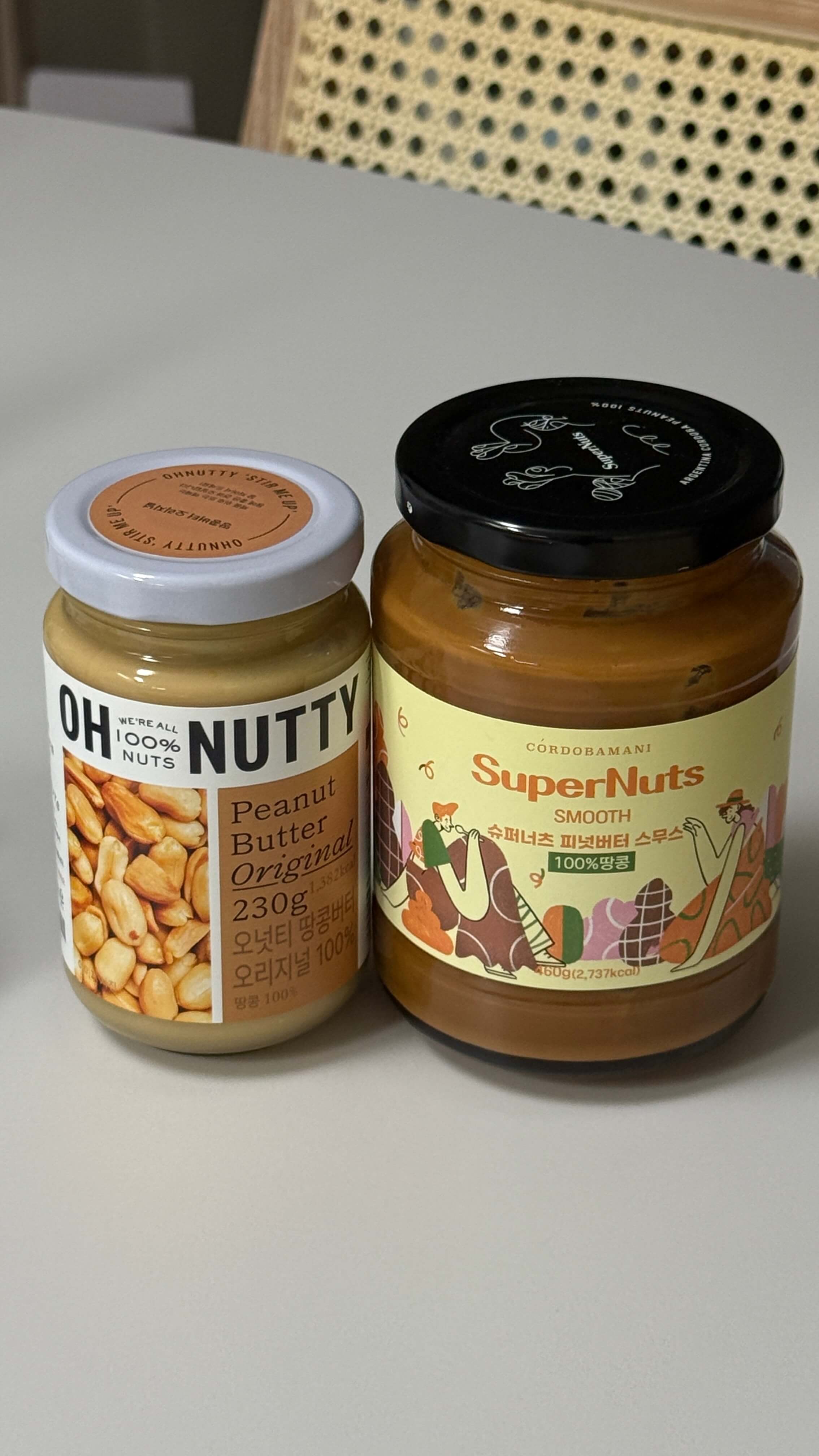 제가 먹고 있는 땅콩버터는 두가지 인데, 두 제품 다 100% 땅콩으로 다른 첨가물을 첨가하지 않은 땅콩버터입니다.